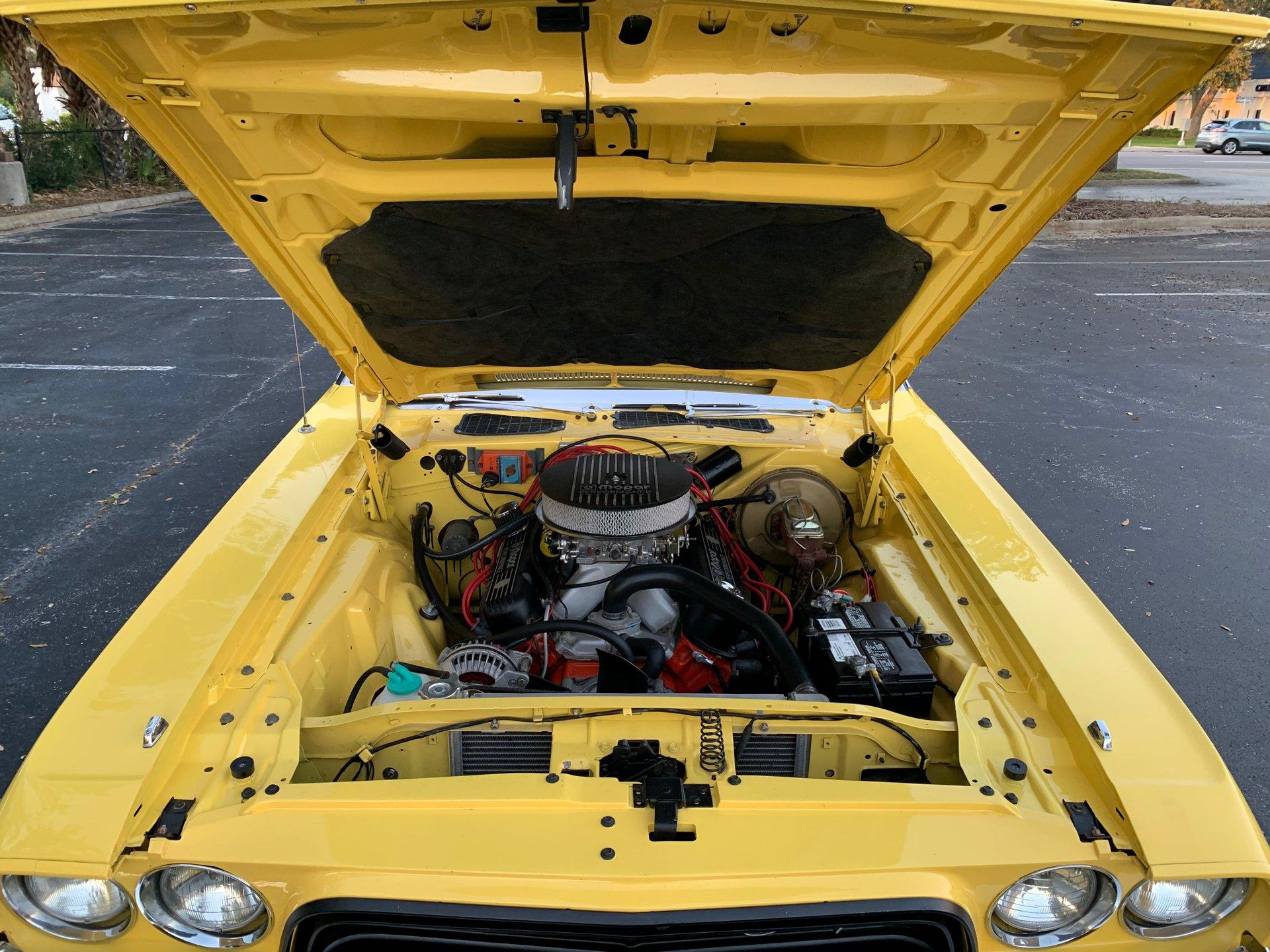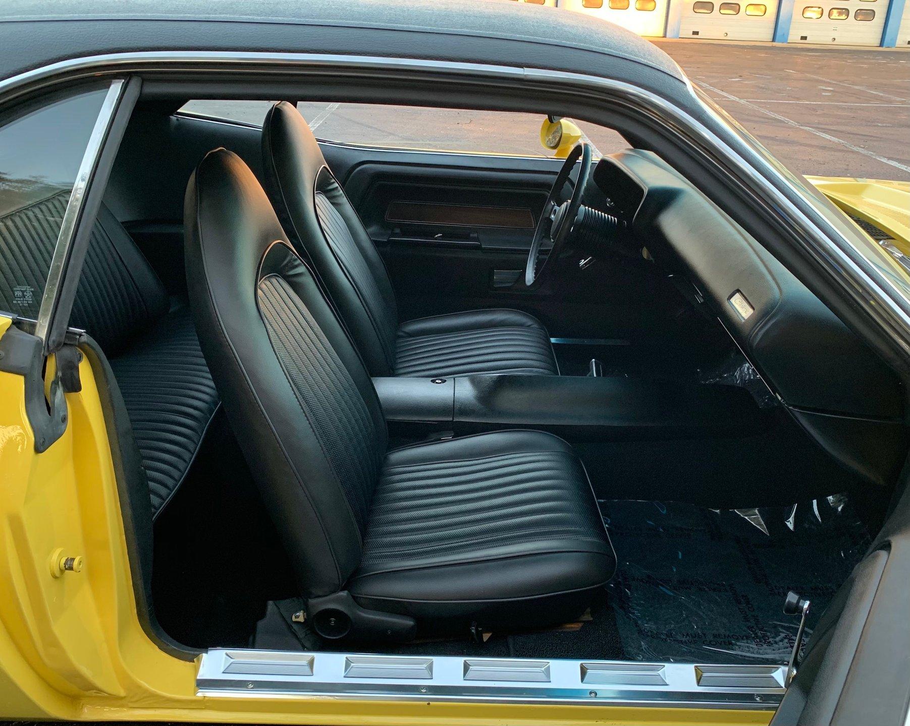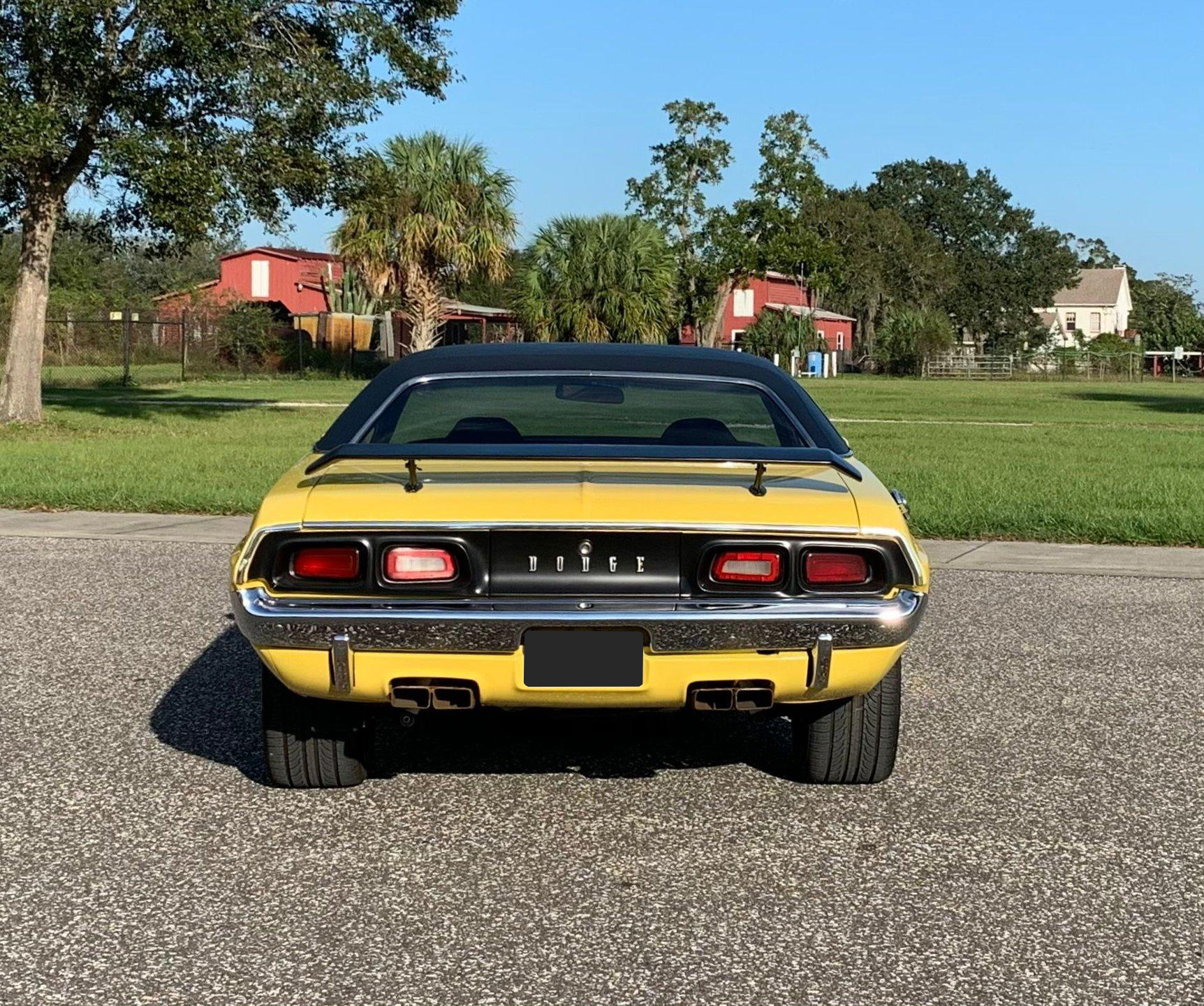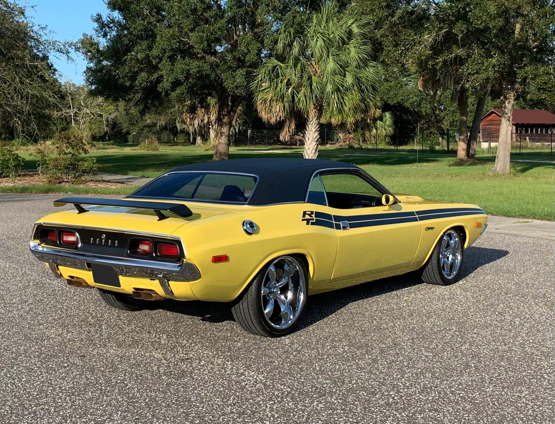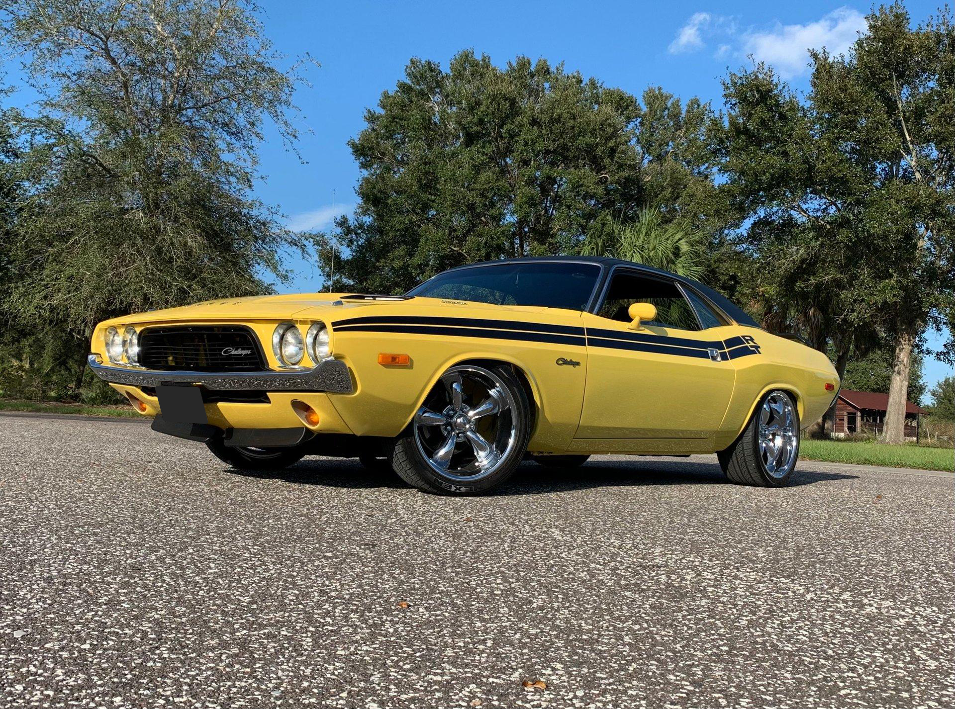 We are pleased to offer this 1973 Dodge Challenger for Sale. VIN matching 340 V8 engine block, Mopar aluminum intake, Edelbrock 4 barrel carburetor, headers, dual exhaust, automatic transmission, front power disc brakes, 8 3/4 rear end, front and rear sway bars, 18”/20” Coys C5 chrome plated wheels, beautiful yellow exterior, black vinyl top, black stripe package, Rally Hood, rear deck spoiler, black bucket seat interior, center console with floor shifter, iEquus Gauge package. With a tenacious sounding 340 V8 and a slick yellow-on-black color scheme, this Super Cool Mopar has that aggressive Pro-Touring look that everyone wants! This Challenger is a ton of fun and an eye catcher everywhere it goes! Call us today for the details before it's gone!