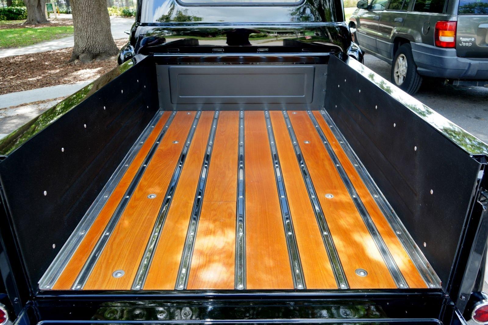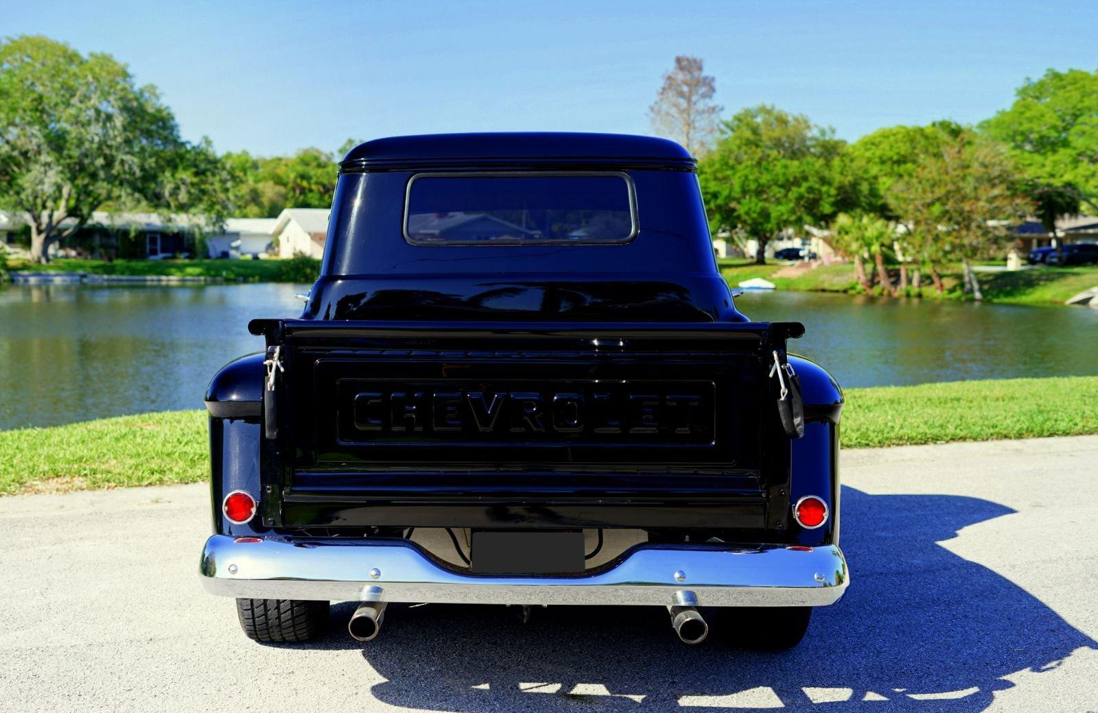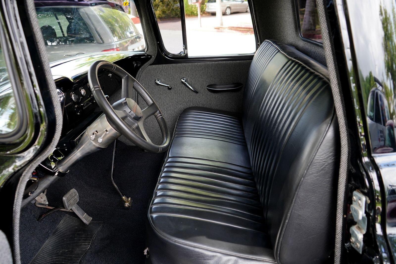 We are pleased to offer this 1958 Chevrolet Apache Pickup Truck for Sale. 350 Cu In V8 engine, Demon 4 barrel carburetor, air gap aluminum intake, electronic ignition, dual exhaust with electric cutouts, 700R4 overdrive transmission, upgraded front suspension with rack and pinion power steering, 4 wheel disc brakes, 9 inch rear with a 3.00 posi gear, 15” American Racing Torque Thrust D Wheels with Cooper white letter tires, stunning jet black paint job on an incredibly strait Pickup Body, step side bed, wood bed floor, driver's chrome mirror, tinted glass, black bench seat interior, tilt steering column, VDO Gauges, Lokar Shifter, under dash air conditioning, electric wipers.